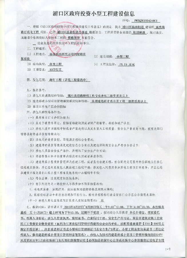 首页 > 工程招标> 江苏南京汤虎线路灯亮化工程招标公告