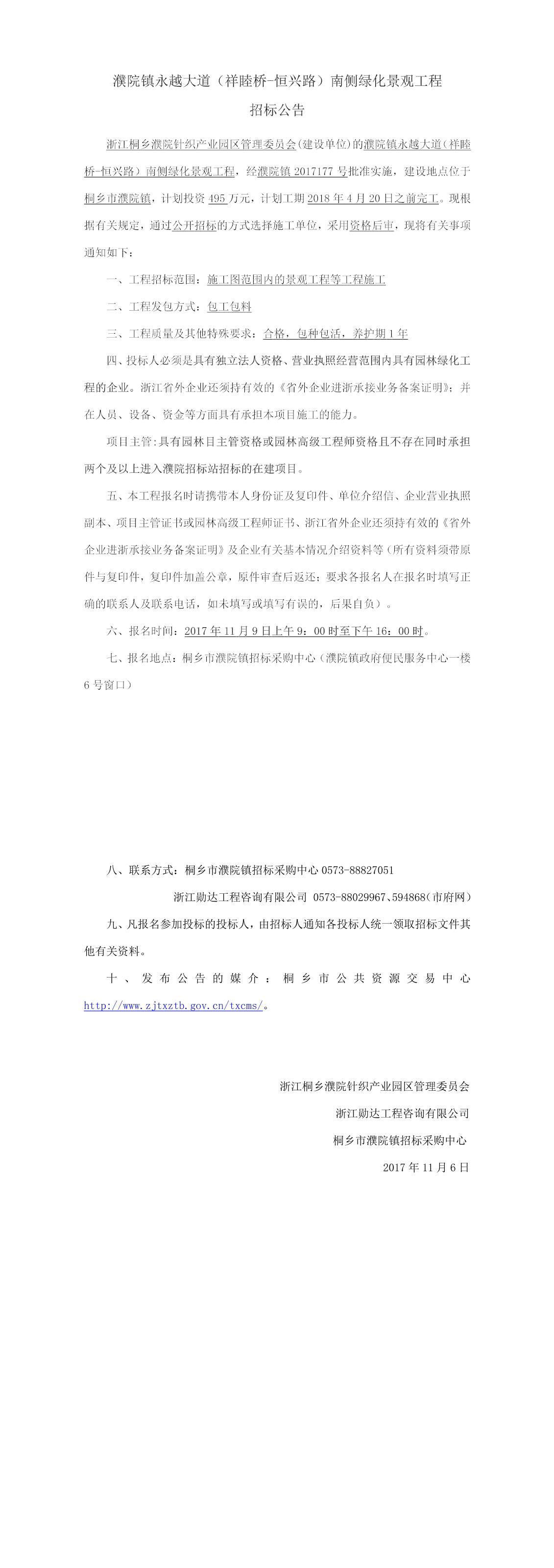 濮院镇永越大道(祥睦桥-恒兴路)南侧绿化景观工程