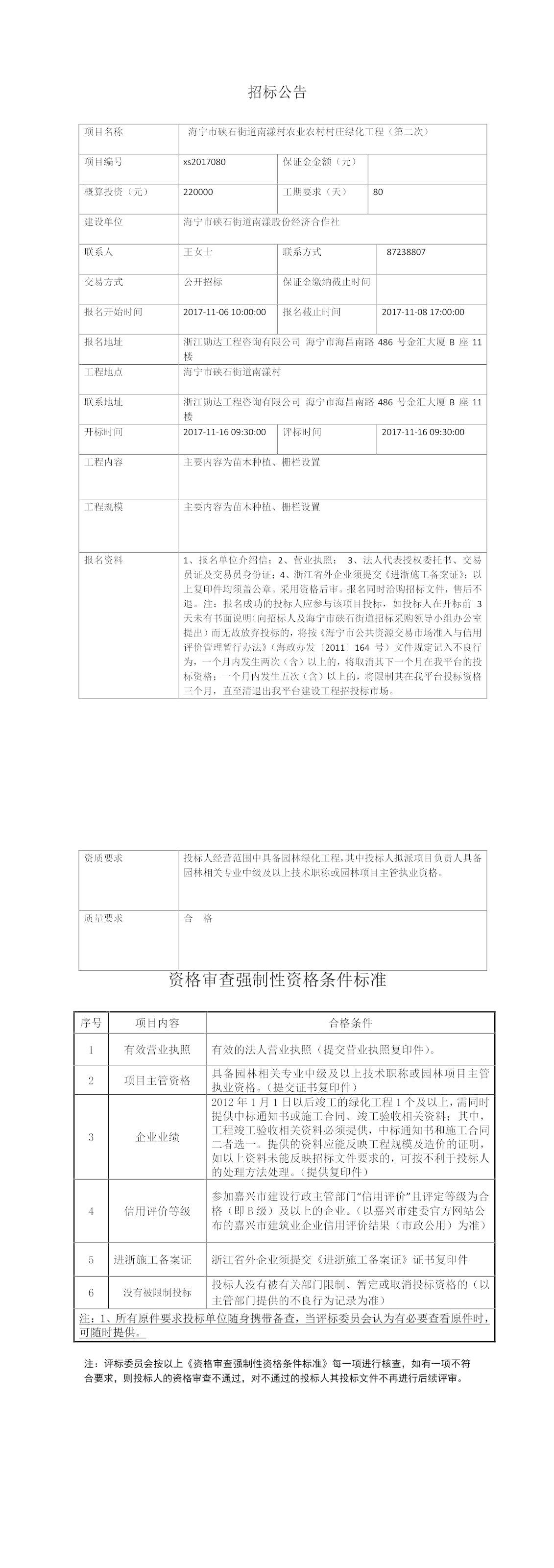 首页 > 工程招标> 海宁市硖石街道南漾村农业农村村庄绿化工程(第二次)