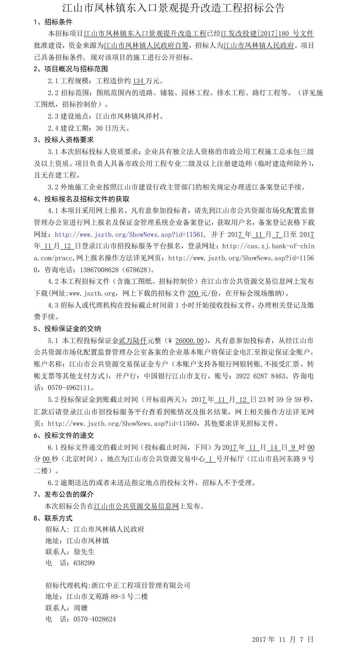 首页 > 工程招标> 江山市凤林镇东入口景观提升改造工程