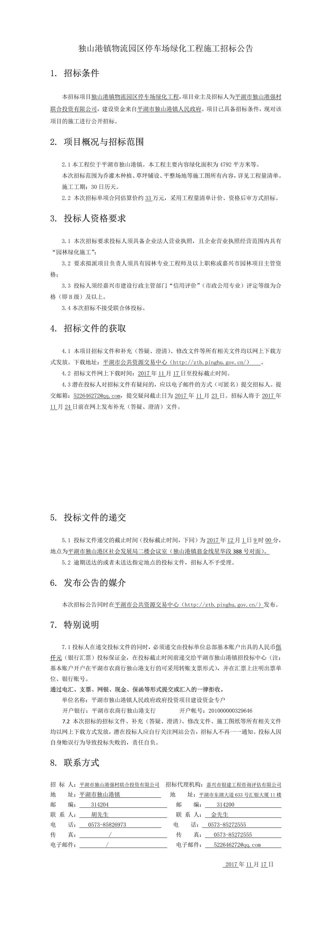 独山港镇物流园区停车场绿化工程