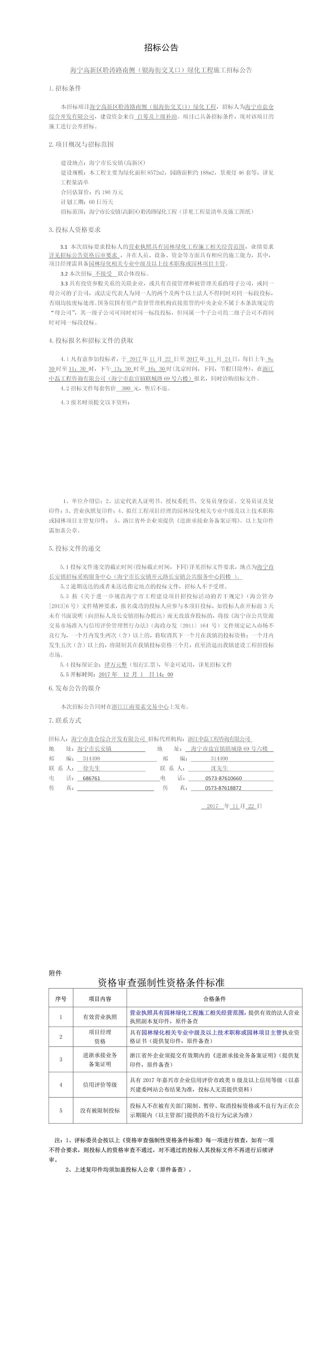 海宁高新区聆涛路南侧(银海街交叉口)绿化工程 信息发布时间:2017-11-22 ![]() |