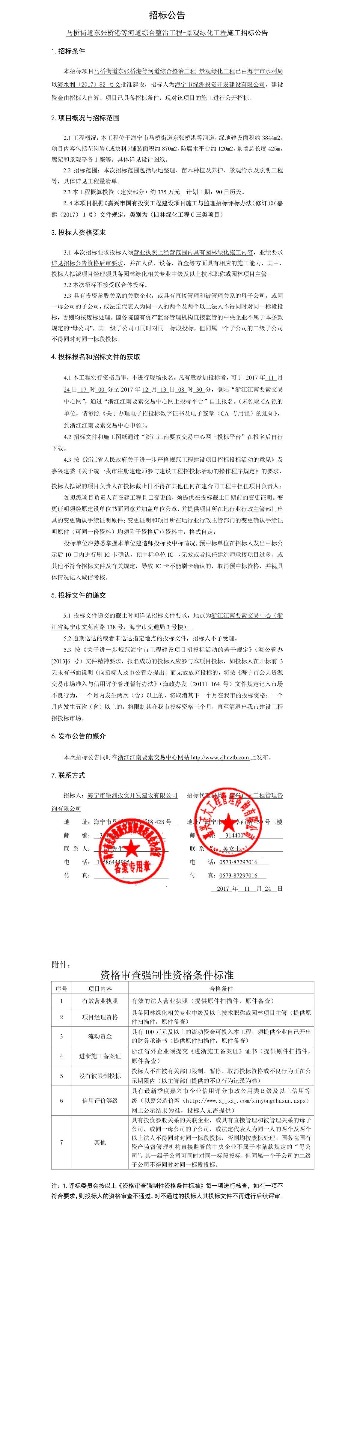 马桥街道东张桥港等河道综合整治工程-景观绿化工程 信息发布时间:2017-11-27 ![]() |